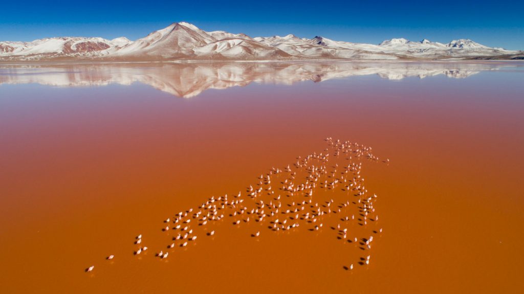 Hostal de Sal, partida rumbo a las lagunas, después del desayuno ,travesía a pueblos como san Juan, Colchaka, salar de chiguana, visita al volcán ollague desde el mirador, visita las pequeñas lagunas altiplánicas ,con flamencos como ser laguna cañapa, hedionda almuerzo ,travesía de desierto como Siloli, Árbol de piedra La ruta pasa por paisajes espectaculares con formaciones rocosas volcánicas multicolores y alcanza una altura de 5000 metros. En el camino tendremos un ALMUERZO en el Paso del Inca, y llegaremos a Laguna Colorada aproximadamente a las 3 p.m. La Laguna Colorada se encuentra a 151 km al sur de San Juan a una altitud de 4278 metros y cubre un área de 60 km2. La rica coloración roja se deriva de las algas y el plancton, que prosperan en sus minerales, y la costa está bordeada por depósitos blancos brillantes de sodio, magnesio, bórax y yeso. La laguna está habitada por numerosos flamencos, tres especies de las cuales se reproducen allí. El flamenco chileno (Phoenicopterus Chilensis) alcanza una altura de poco más de un metro y tiene un pico blanco con puntas negras, patas azul sucio, rodillas rojas y plumaje color salmón. El flamenco James (Phoenicopterus James) es el más pequeño de las tres especies. El flamenco andino (Phoenicopterus Andinus) es el más grande de los tres y tiene un plumaje rosado, patas gritonas y un pico amarillo y negro. Ver a estos posters rosados pavoneándose a través de lagunas minerales heladas a 5000m te hará abandonar las asociaciones desgastadas por el tiempo entre flamencos, cocoteros y trópicos calientes y humeantes. Posteriormente visitaremos Sol de mañana ( Zona Volcanica)